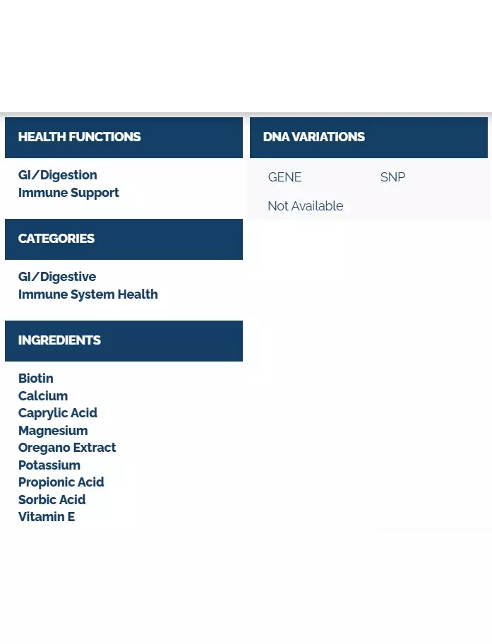 Екстракт орегано — може сприяти мікробній підтримці. Має потужні антибактеріальні, протигрибкові та антиоксидантні властивості завдяки вмісту карвакролу і тимолу. Застосовується для боротьби з різними інфекціями, грибками та паразитами, для зміцнення імунітету, поліпшення травлення та регенерації клітин.