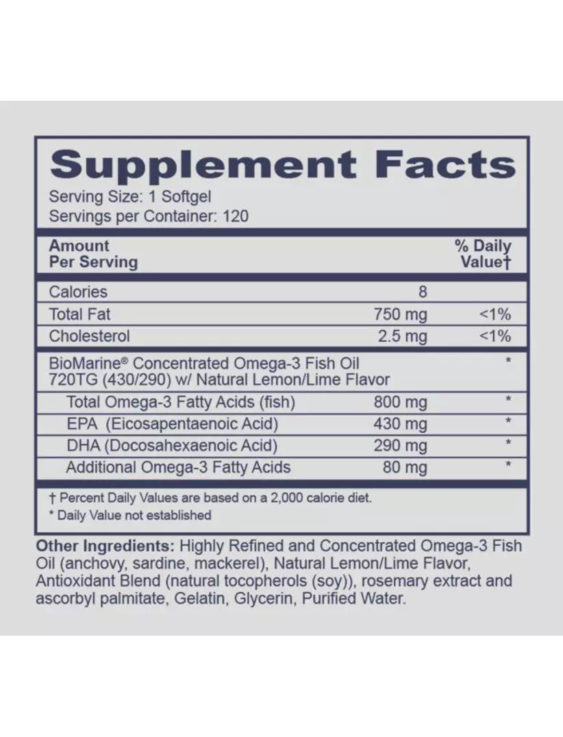 Концентрований риб'ячий жир Омега-3 BioMarine® 720TG з натуральним смаком лимона/лайма