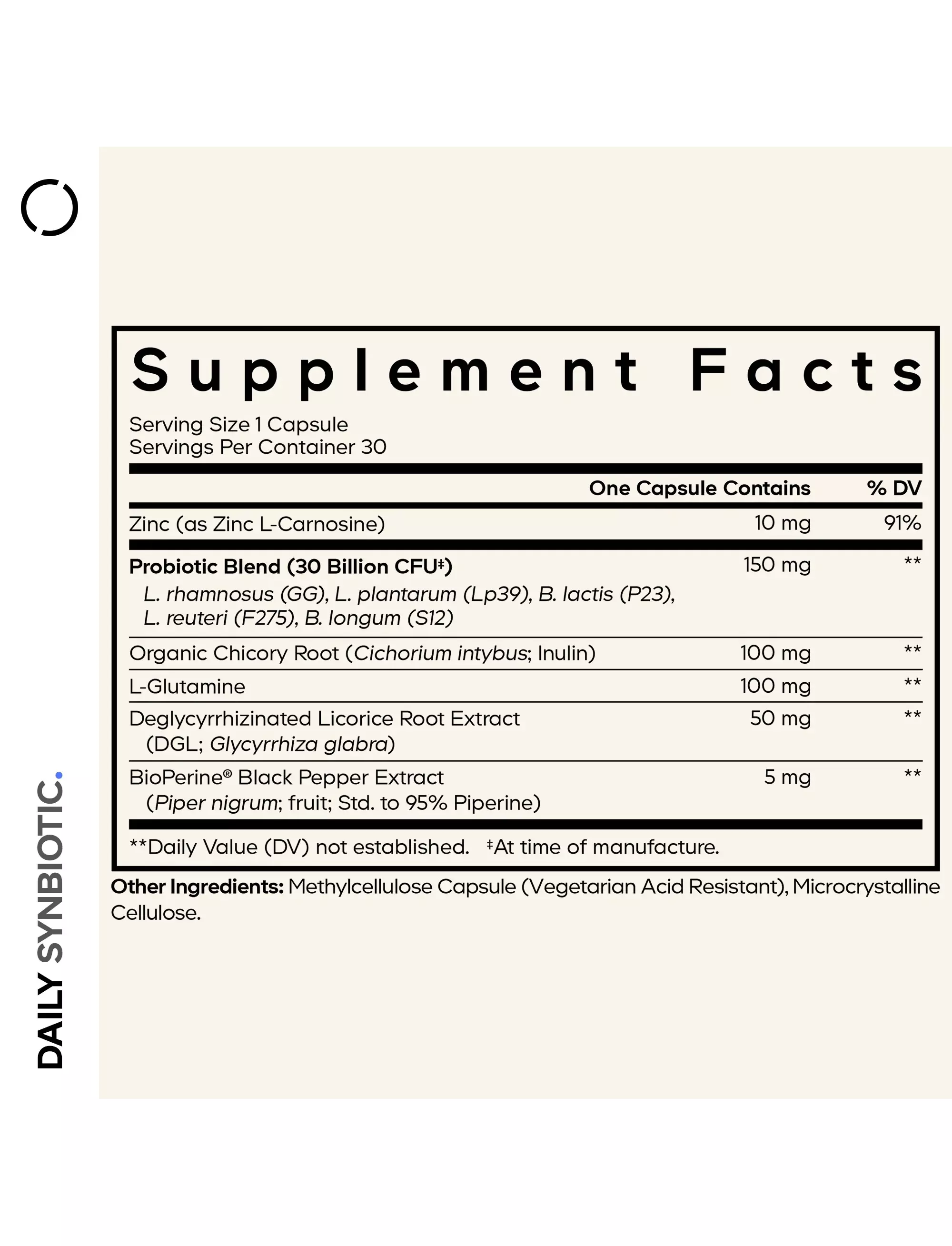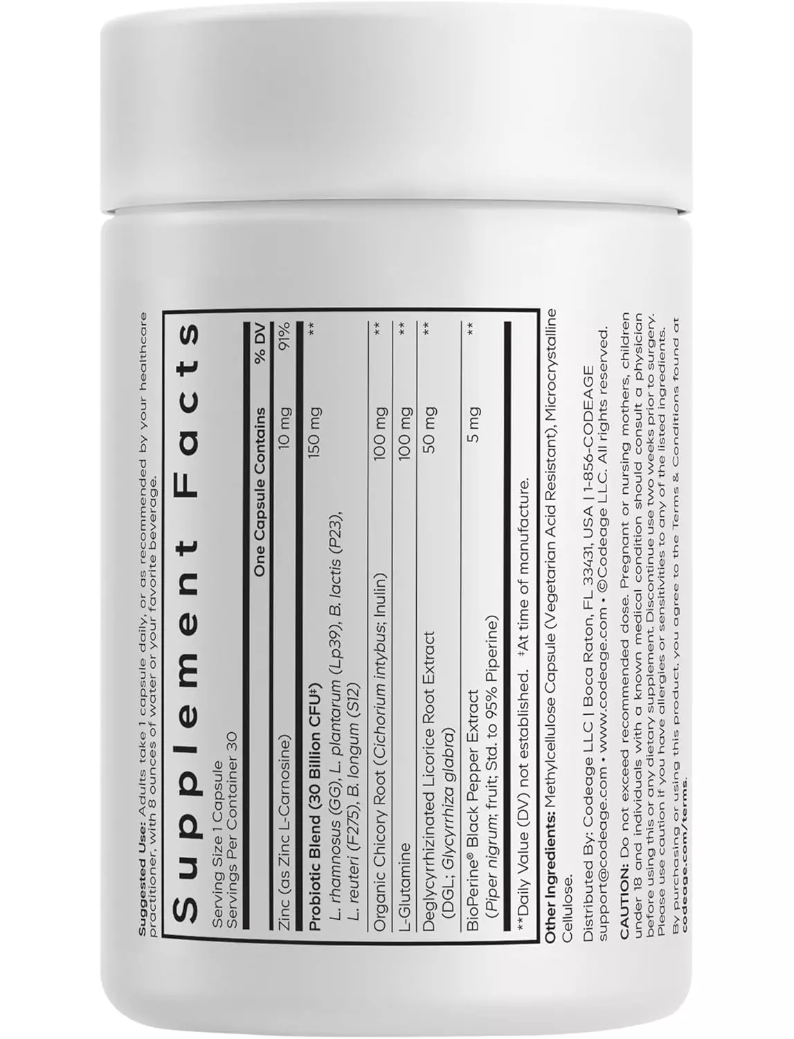 із пребіотиками, L-глютаміном, цинком, DGL та BioPerine® для максимального