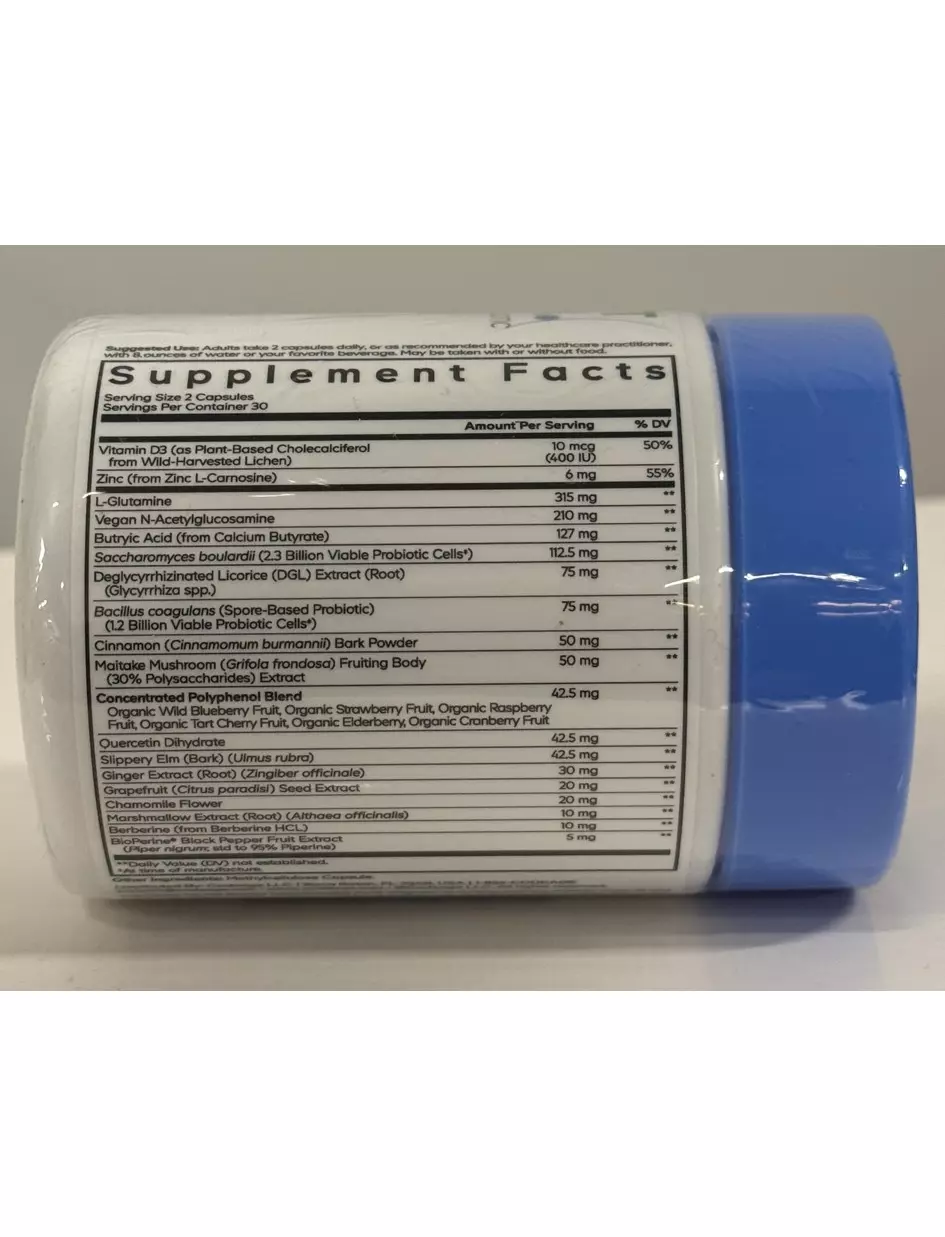 Эта формула добавки содержит концентрированную смесь полифенолов, включая органическую дикую чернику, клубнику, малину, терпкую вишню, бузину и клюкву. Кроме того, эта формула для поддержания здоровья кишечника содержит пробиотики, кверцетин, корицу, имбирь, грейпфрут, гриб майтаке и скользкий вяз.