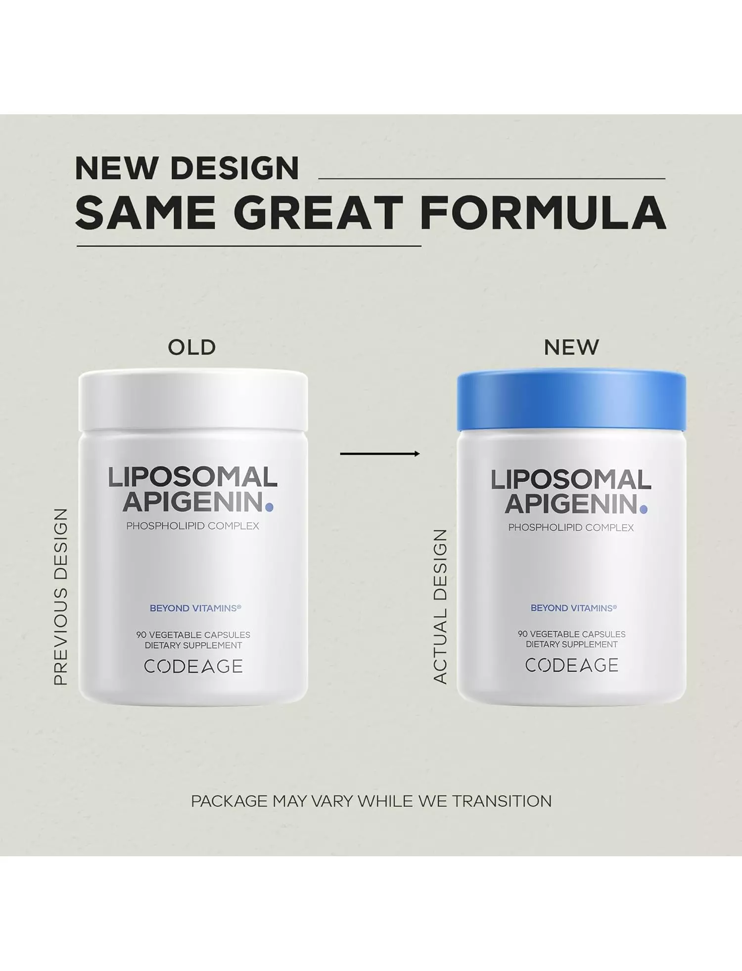 Ця формула апігеніну рослинного походження, натхненна аюрведичною медициною, випускається у формі капсул по 90 порцій у пляшці на 3 місяці. Codeage приділяє першорядну увагу якості продукту. Ліпосомальний апігенін Codeage виробляється США на підприємстві, сертифікованому cGMP.
