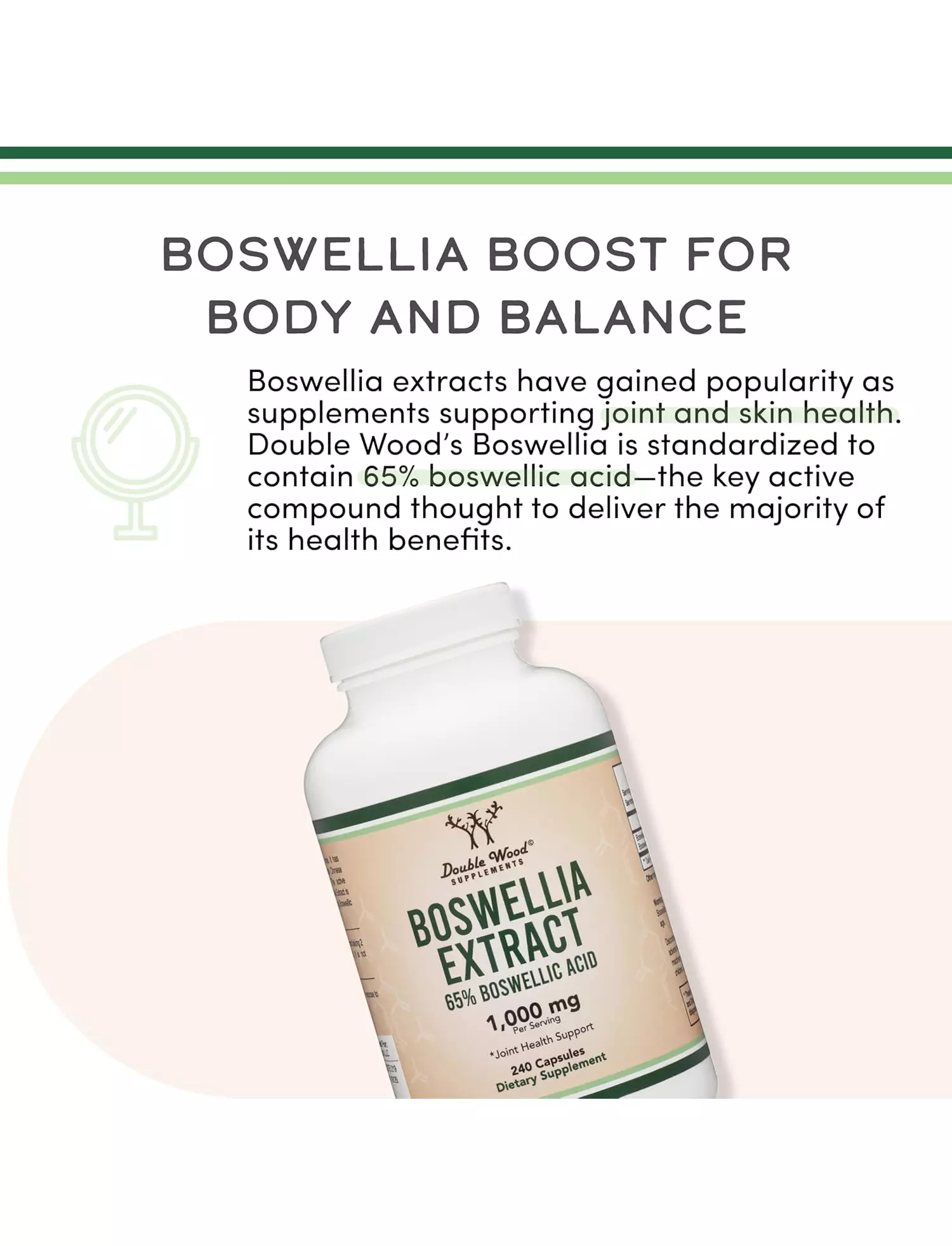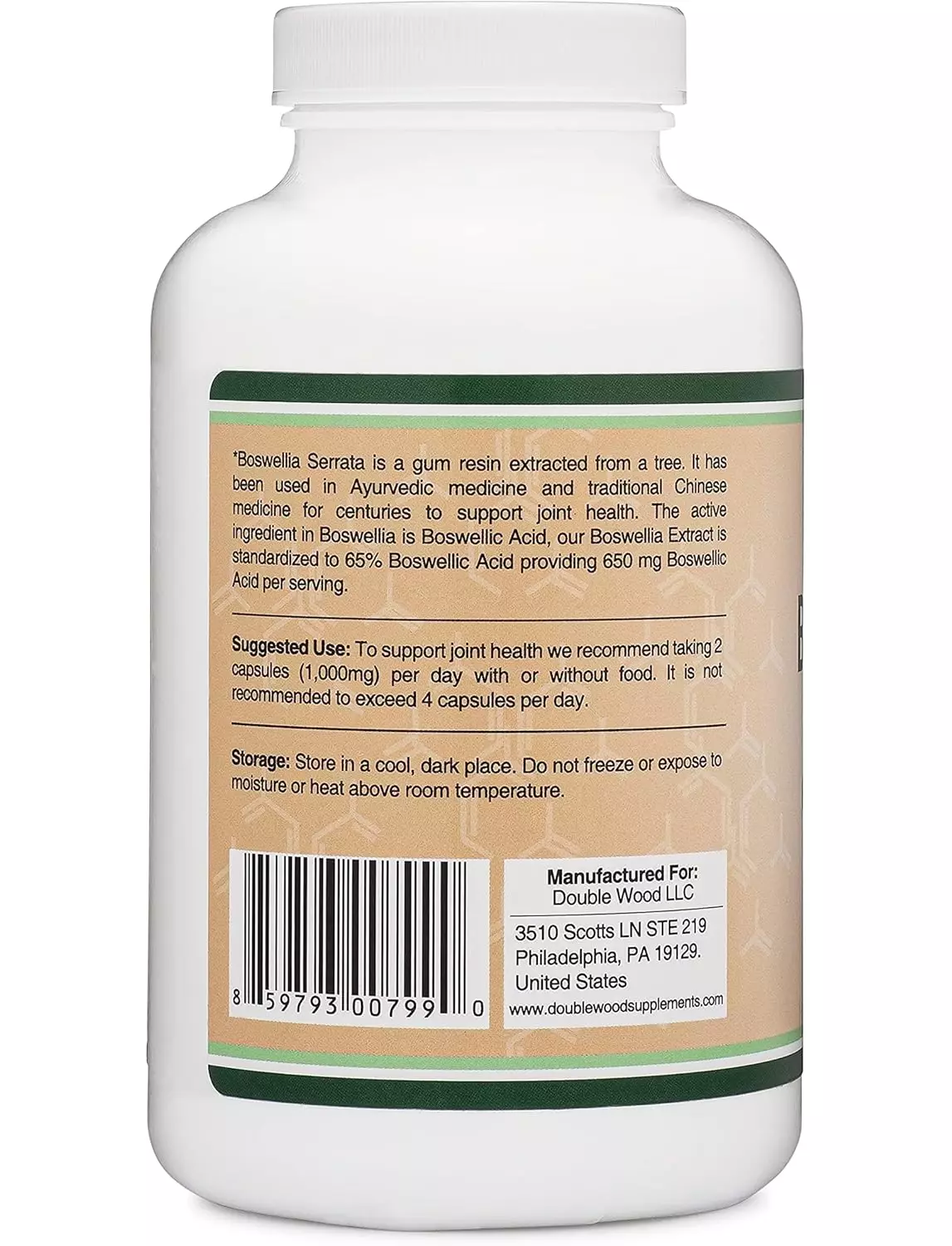 комплекс босвелії від Double Wood стандартизований до 65% босвелієвої кислоти для максимальної користі.Запас на чотири місяці: