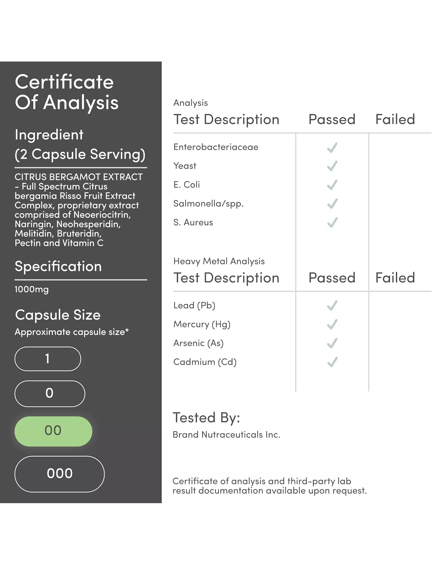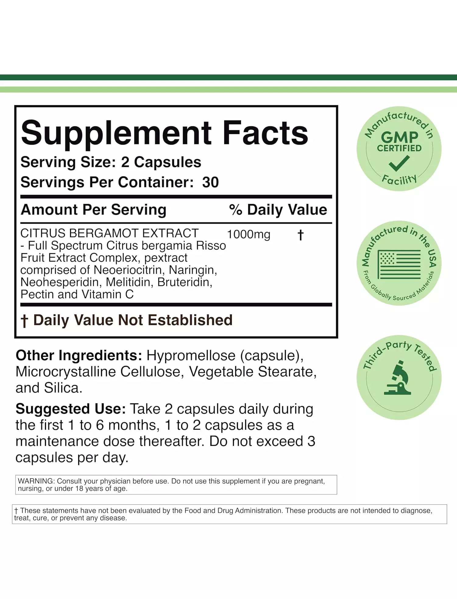 Цитрусовий бергамот (Citrus bergamia) – це унікальний фрукт із Південної Італії, який відомий своїми біоактивними сполуками. Цитрусовий бергамот підтримує здоровий рівень холестерину та здоров'я та функцію клітин крові. Він може допомагати знижувати рівень «поганого» холестерину (LDL), підвищувати «добрий» (HDL), підтримувати серцево‑судинне здоров’я та має антиоксидантні й протизапальні властивості.