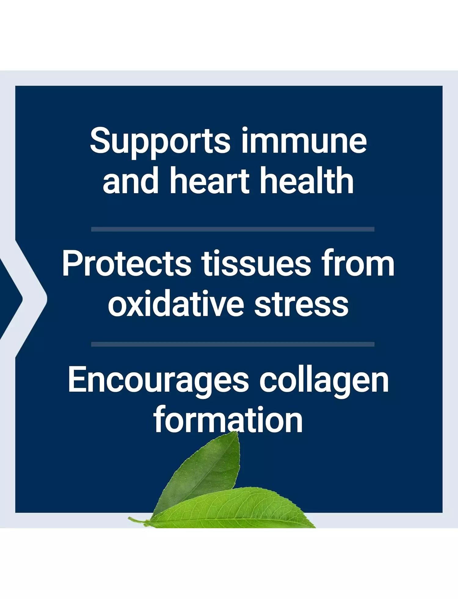 Вітамін C, або аскорбінова кислота, являє собою білу кристалічну водорозчинну речовину, що міститься в цитрусових. Як антиоксидант, вітамін C видаляє вільні радикали в організмі та захищає тканини від окислювального стресу. Вітамін C також сприяє засвоєнню заліза, одночасно пригнічуючи його окиснення. Вітамін C є життєво важливим кофактором для утворення колагену, сполучної тканини, яка підтримує стінки артерій, шкіру, кістки та зуби.