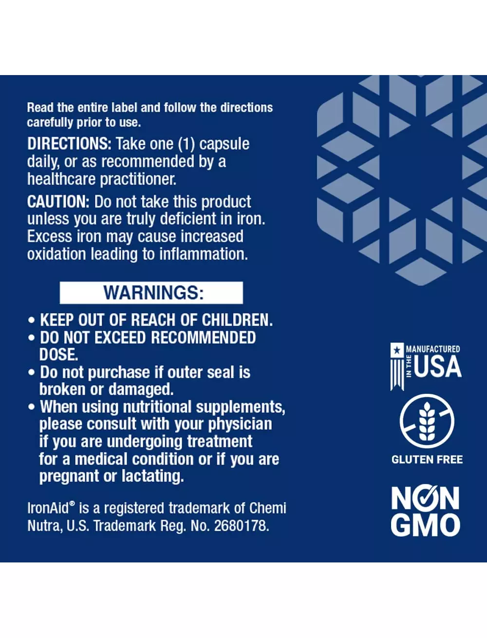 IronAid® є зареєстрованим товарним знаком Chemi Nutra, U.S. Trademark Reg.