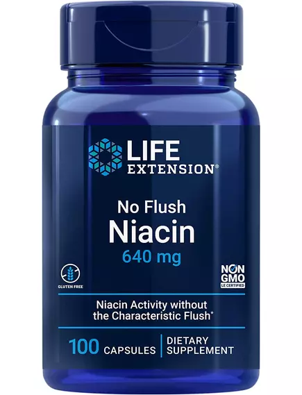 Life Extension Niacin No Flush B3 / Ніацин без почервоніння шкіри Б3 640 мг 100 капсул