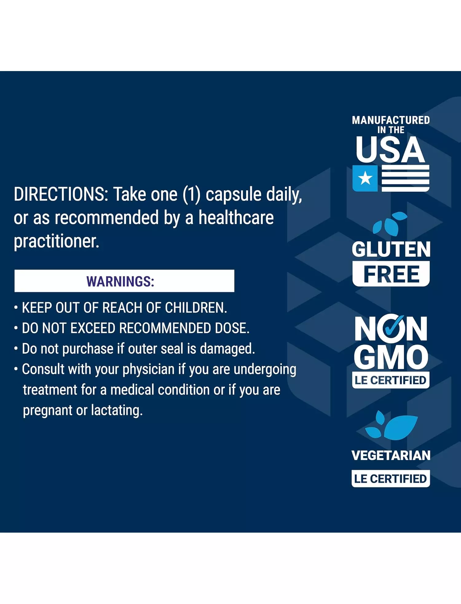 Інші інгредієнти: мікрокристалічна целюлоза, рослинна целюлоза (капсула), стеаринова кислота, діоксид кремнію.