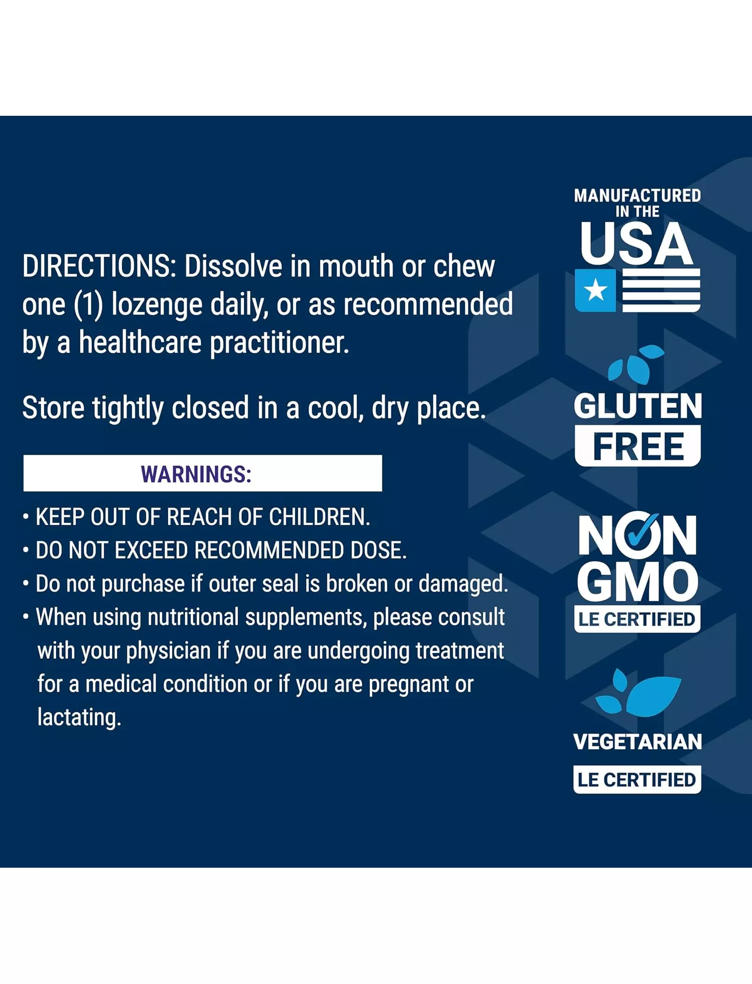 Наші пастилки з вітаміном Б12 можна розчиняти в роті або розжовувати — це зручний спосіб підтримувати оптимальний рівень Б12, який сприяє нормальному рівню гомоцистеїну, а також здоров'ю мозку та когнітивним функціям.
