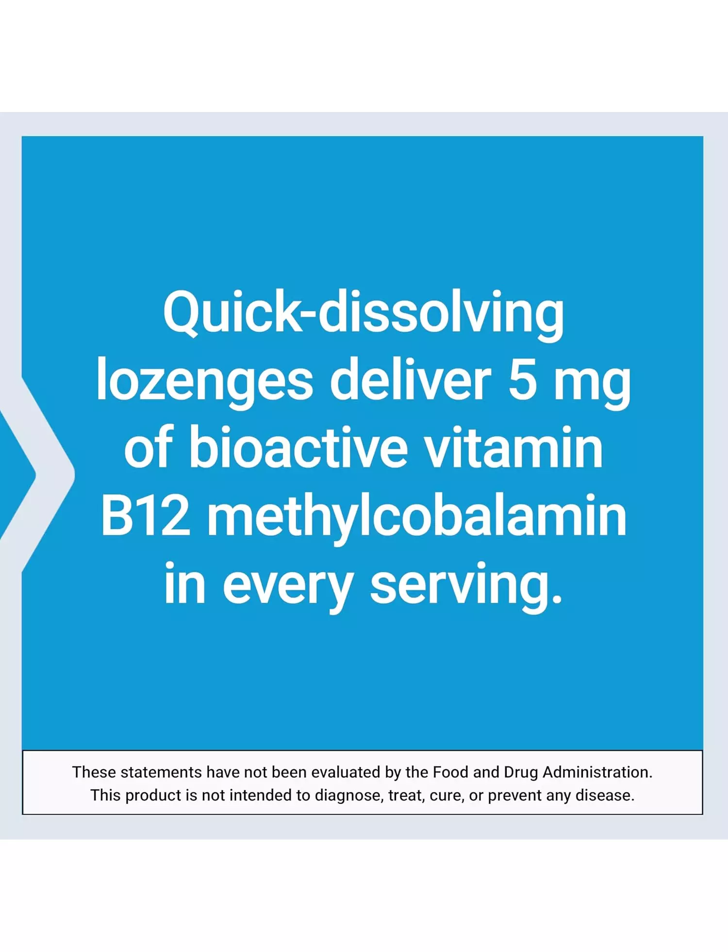 Існує вісім вітамінів групи Б, кожен із яких виконує свій набір важливих функцій у підтримці здоров'я всього організму. Метилкобаламін — це форма вітаміну Б12, яка використовується у центральній нервовій системі. Він необхідний для зростання та відтворення клітин. Наші пастилки містять по 5 мг метилкобаламіну кожна.