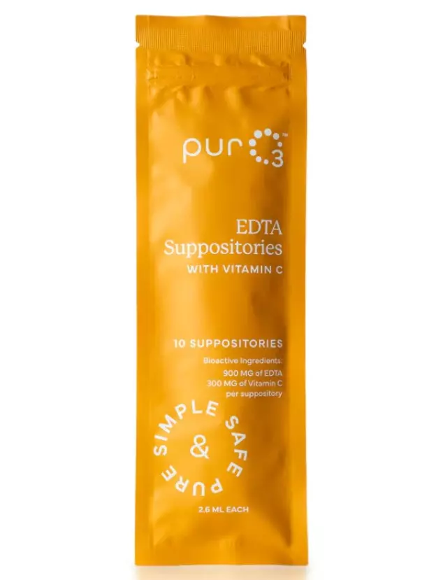 Щоб допомогти людям впоратися з цією проблемою, PurO3 пропонує супозиторій, що містить ЕДТА та вітамін С, щоб допомогти організму позбутися цих токсинів. Відомо, що ЕДТА пов'язує важкі метали із собою, дозволяючи організму виводити важкі метали з організму. Вітамін С допомагає у цьому процесі.