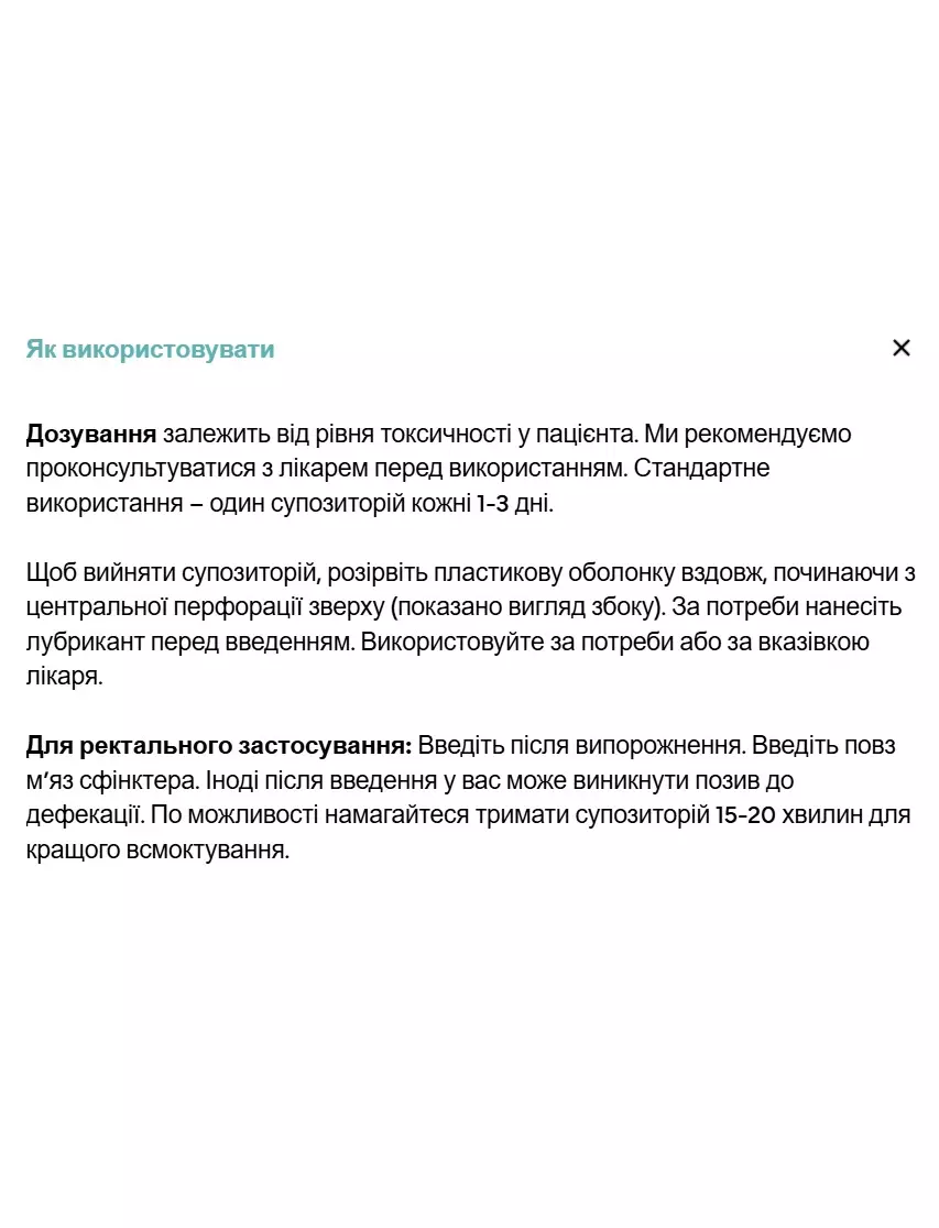 минаючи травну систему, супозиторії забезпечують більш ефективне та результативне всмоктування активних інгредієнтів.Швидке полегшення: