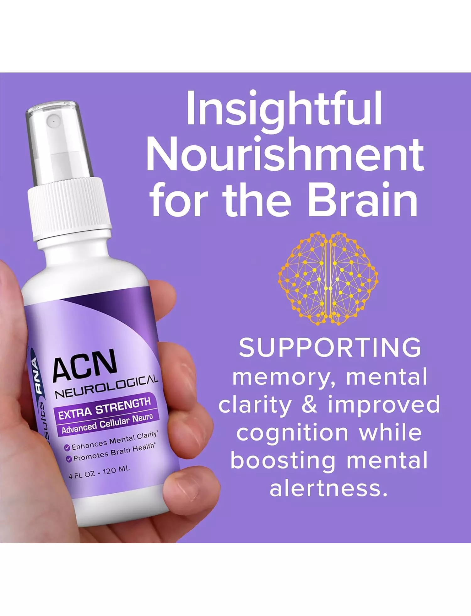Принимайте 12 спреев ACN Neuro Extra Strength два раза в день для усиления поддержки или 6 спреев дважды в день для поддержания здоровья.