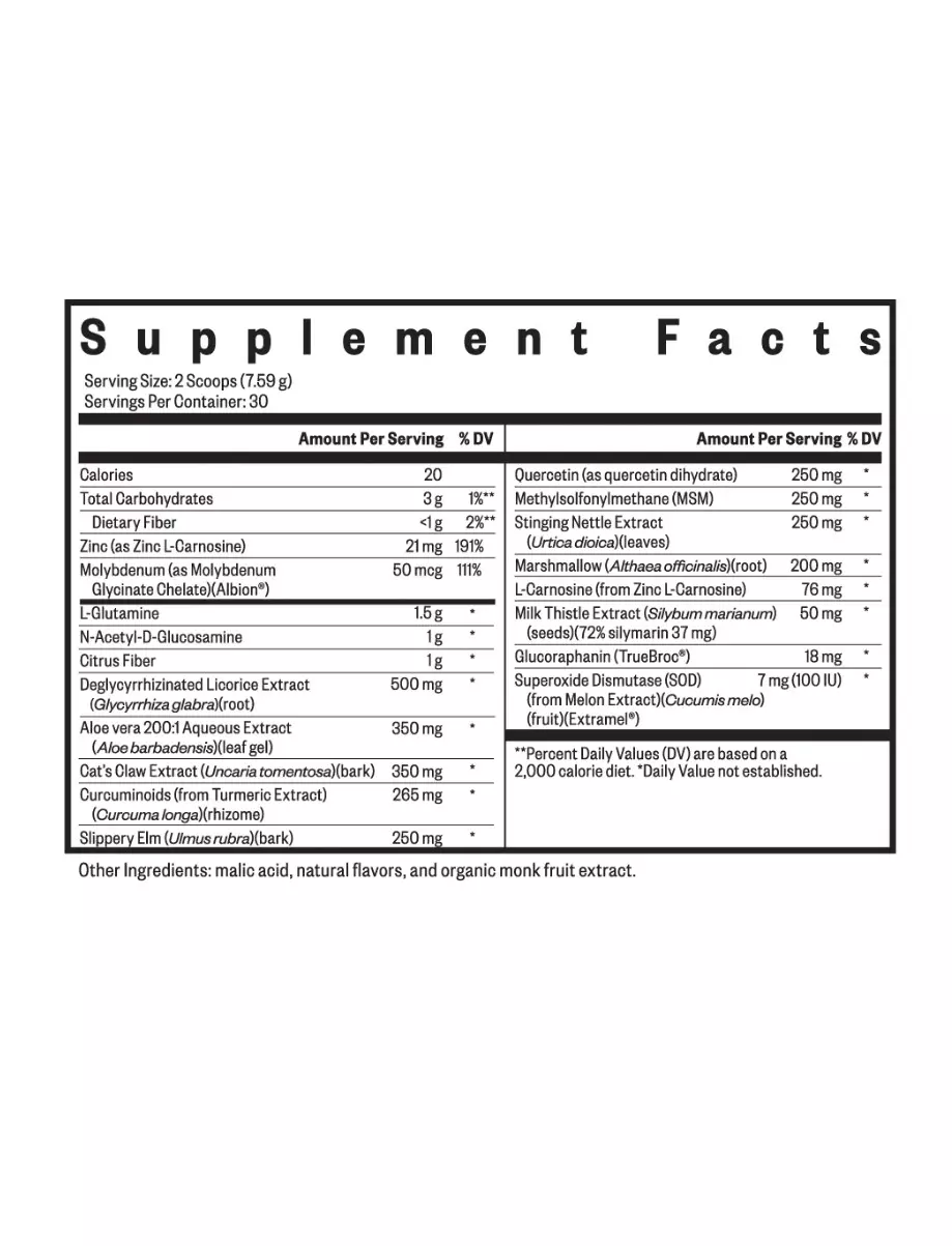 Питательные вещества и травы действуют синергетически, поддерживая оптимальную функцию желудочно-кишечного тракта, что является жизненно важной частью поддержания здоровой иммунной системы и общего самочувствия.*