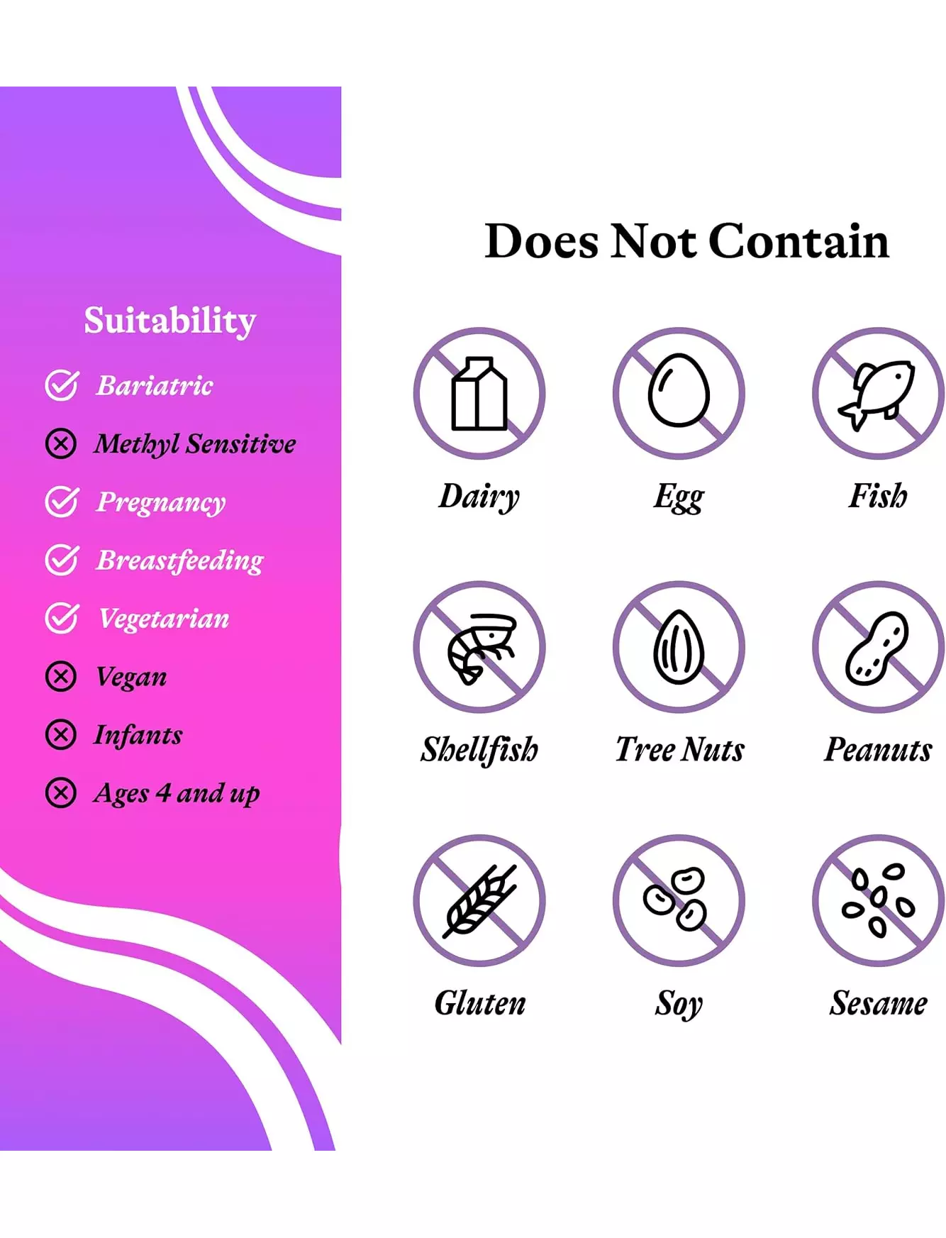 Содержит полный комплекс витаминов группы Б с минералами Albion Traacs для оптимального усвоения и облегчения пищеварения.