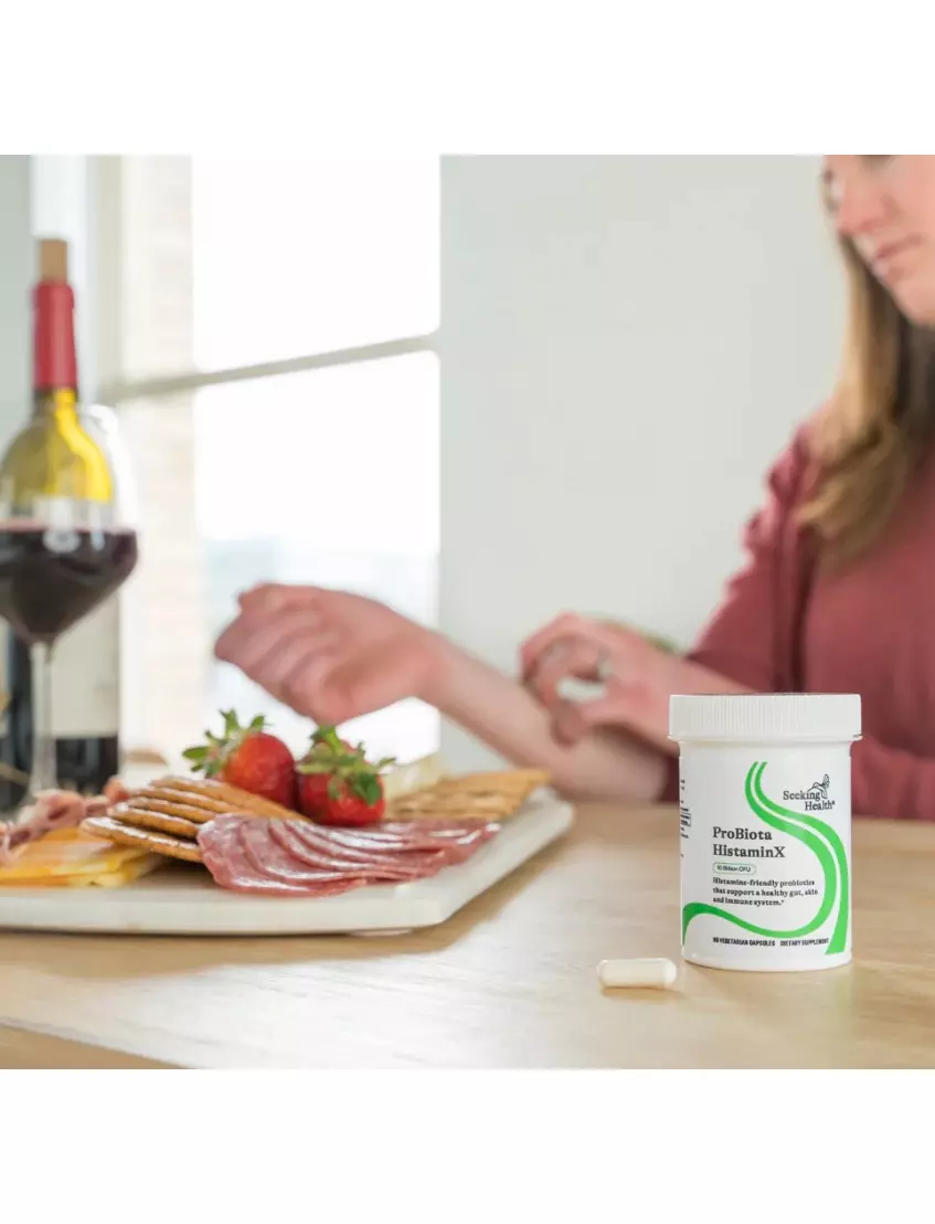 Бактерии, составляющие микробиом кишечника человека, служат многим специализированным целям. Считается, что выборочное добавление популяций определенных видов пробиотиков может изменить уровни конечных продуктов ферментации в кишечнике и способствовать достижению определенных целей в области здравоохранения. Хотя верно то, что некоторые бактерии, обнаруженные в здоровом кишечнике, ответственны за преобразование гистидина в гистамин, что может быть проблематичным для людей с непереносимостью гистамина, другие могут помочь расщепить гистамин и другие биогенные амины и укрепить барьер здорового кишечника. Это может представлять особый интерес для людей с чувствительностью или непереносимостью гистамина, поскольку повышенная проницаемость кишечника может позволить большему количеству проглоченного гистамина пройти из кишечника в кровоток. ProBiota HistaminX содержит только виды пробиотиков, которые считаются «дружественными к гистамину», за исключением тех, которые, как известно, вырабатывают гистамин в кишечнике.*