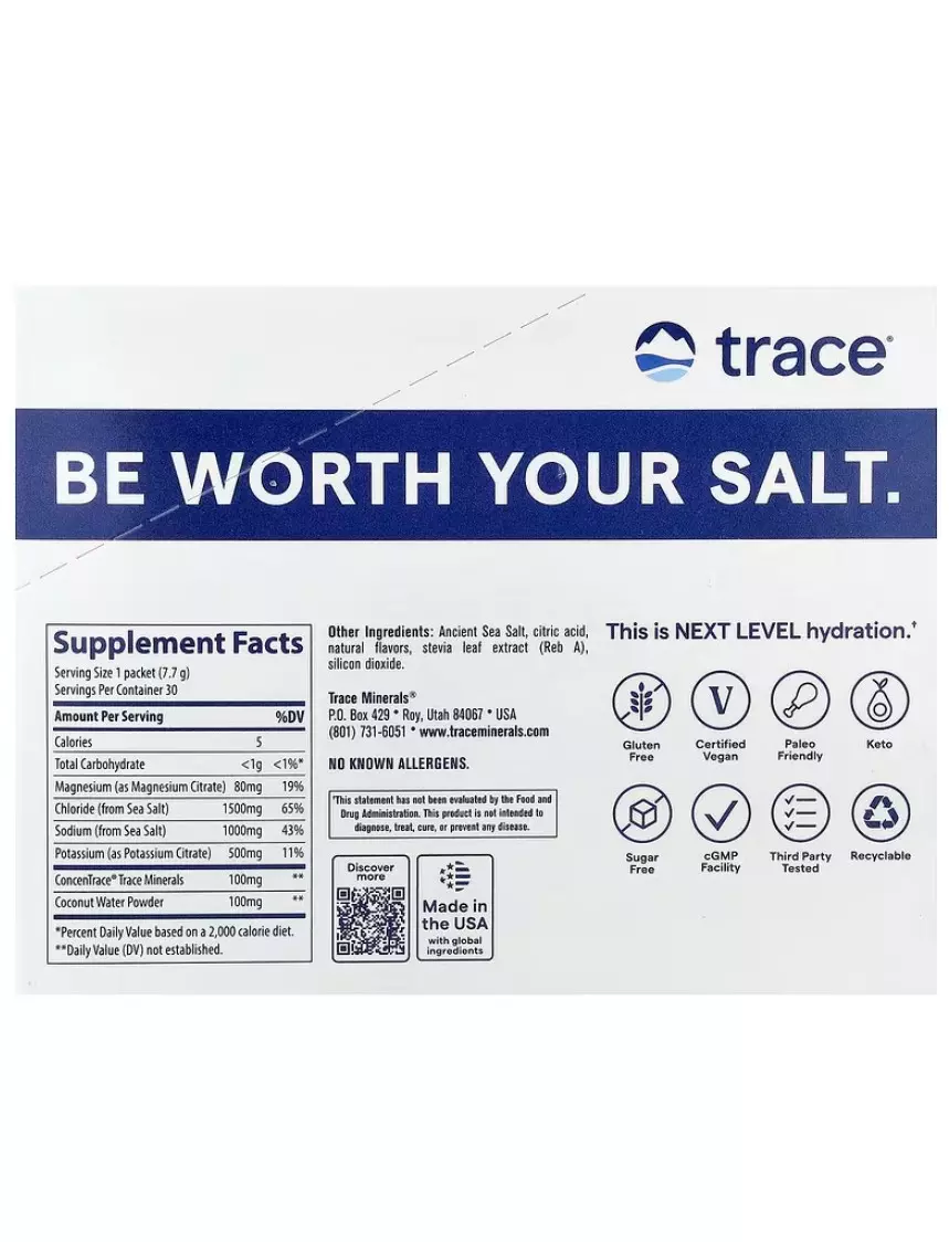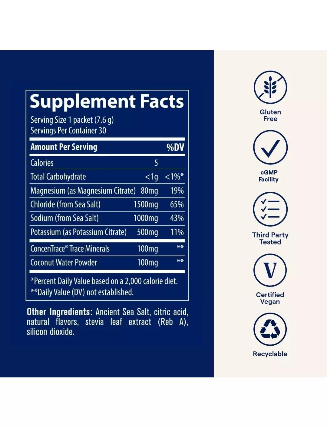 чисті інгредієнти, ефективність яких вам гарантована, чистота, ефективність та якість (включаючи важкі метали) перевірені незалежною організацією в США, без мальтодекстрину, натуральні ароматизатори, без цукру, веганський продукт, без глютену, сертифікований як продукт без ГМО.Ремінералізуйте своє тіло!