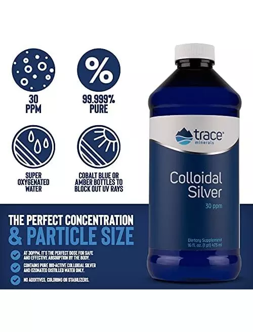 Колоїдне срібло — це харчова добавка, що містить понад 30 ppm на порцію 99,999% чистого, супернасиченого киснем колоїдного срібла. Компанія Trace Minerals Research використовує спеціальну технологію для обробки високоякісного колоїдного срібла для досягнення максимальної ефективності. Ви можете розраховувати на широкий спектр поживних переваг!