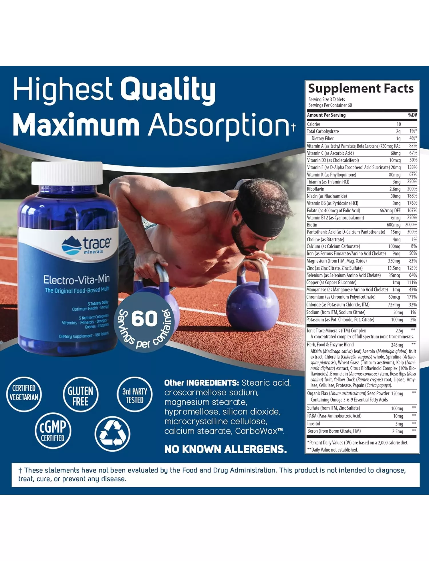 Trace Minerals Electro-Vita-Min / Мультивитаминный комплекс на основе пищевых продуктов 180 таблеток