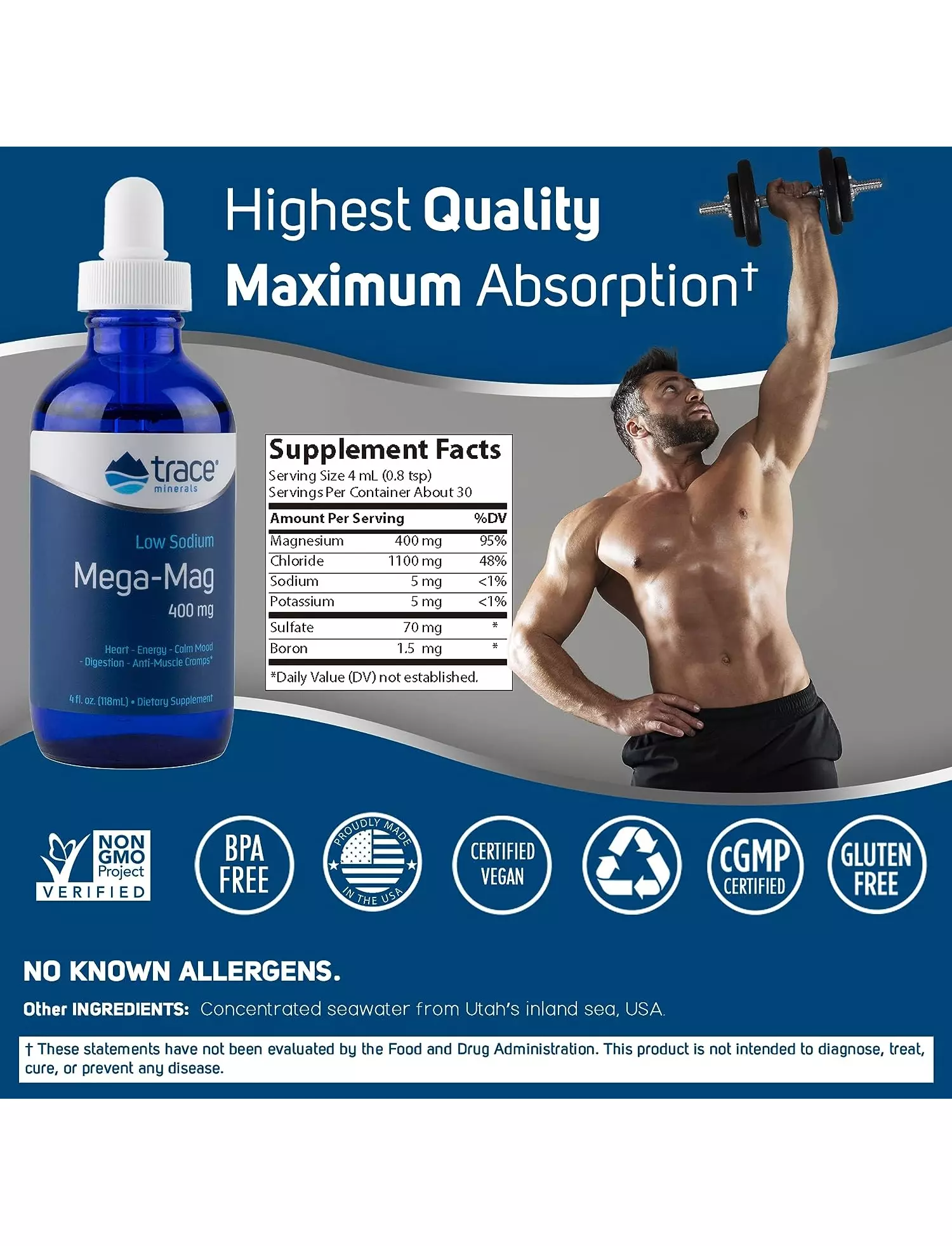 Trace Minerals Mega-Mag / Магний с низким содержанием натрия 400 мг 118 мл