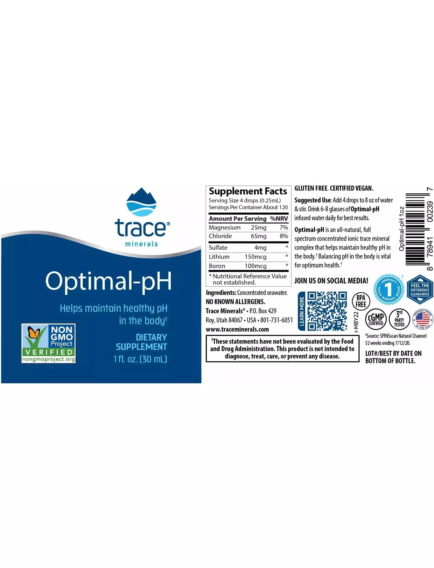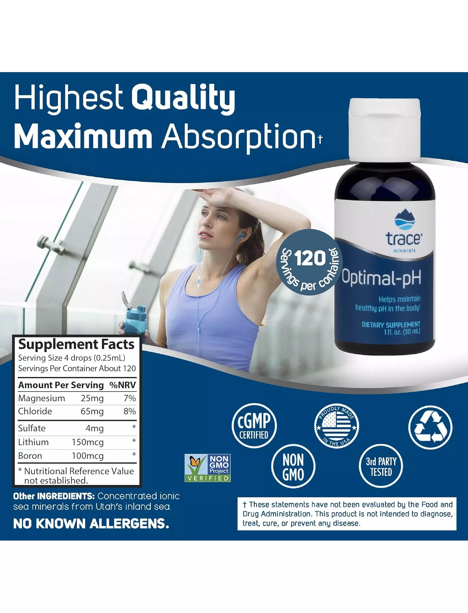 Optimal-pH — це повністю натуральний, концентрований комплекс іонних мікроелементів повного спектру, що допомагає підтримувати здоровий рівень pH в організмі. Збалансований рівень pH є життєво важливим для оптимального здоров'я.