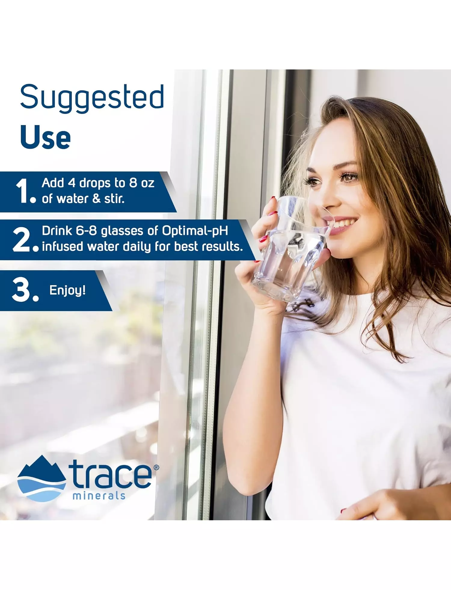Для підтримки імунітету та здоров'я травної системи додайте чотири краплі в 230 мл води та розмішайте. Випивайте 6–8 склянок води, що настояна на Optimal-pH, щодня.