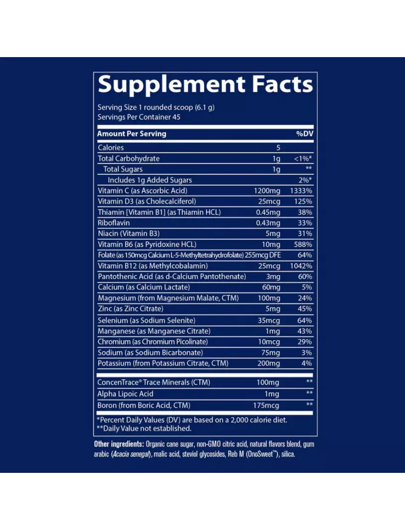 PowerPak зі смаком ягід асаї від Trace Minerals – це порошкова суміш для шипучих напоїв з електролітами та натуральним смаком, яка наповнює ваш щоденний раціон поживними речовинами та електролітами. Кожна порція містить 1200 мг вітаміну С, а також необхідні поживні речовини, такі як марганець, селен, цинк, вітаміни Д3, Б6, Б12 та повний спектр іонних мікроелементів. Чудовий варіант для всієї родини.