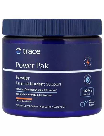 PowerPak зі смаком апельсина від Trace Minerals – це порошкова суміш для шипучих напоїв з електролітами та натуральним смаком, яка наповнює ваш щоденний раціон поживними речовинами та електролітами. Кожна порція містить 1200 мг вітаміну С, а також необхідні поживні речовини, такі як марганець, селен, цинк, вітаміни Д3, Б6, Б12 та повний спектр іонних мікроелементів. Чудовий варіант для всієї родини.
