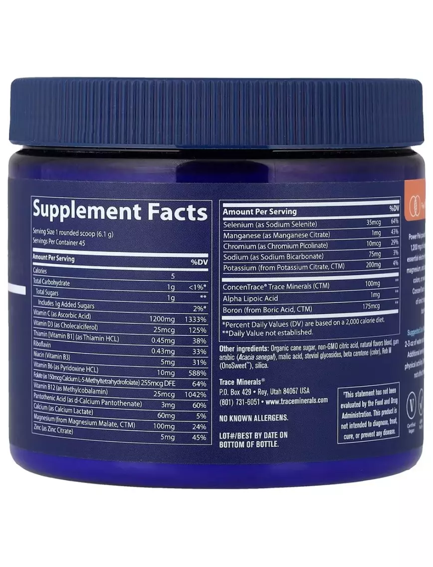 Trace Minerals Power Pak Orange / Вітамін C + електроліти + мультивітаміни смак апельсина 275 г