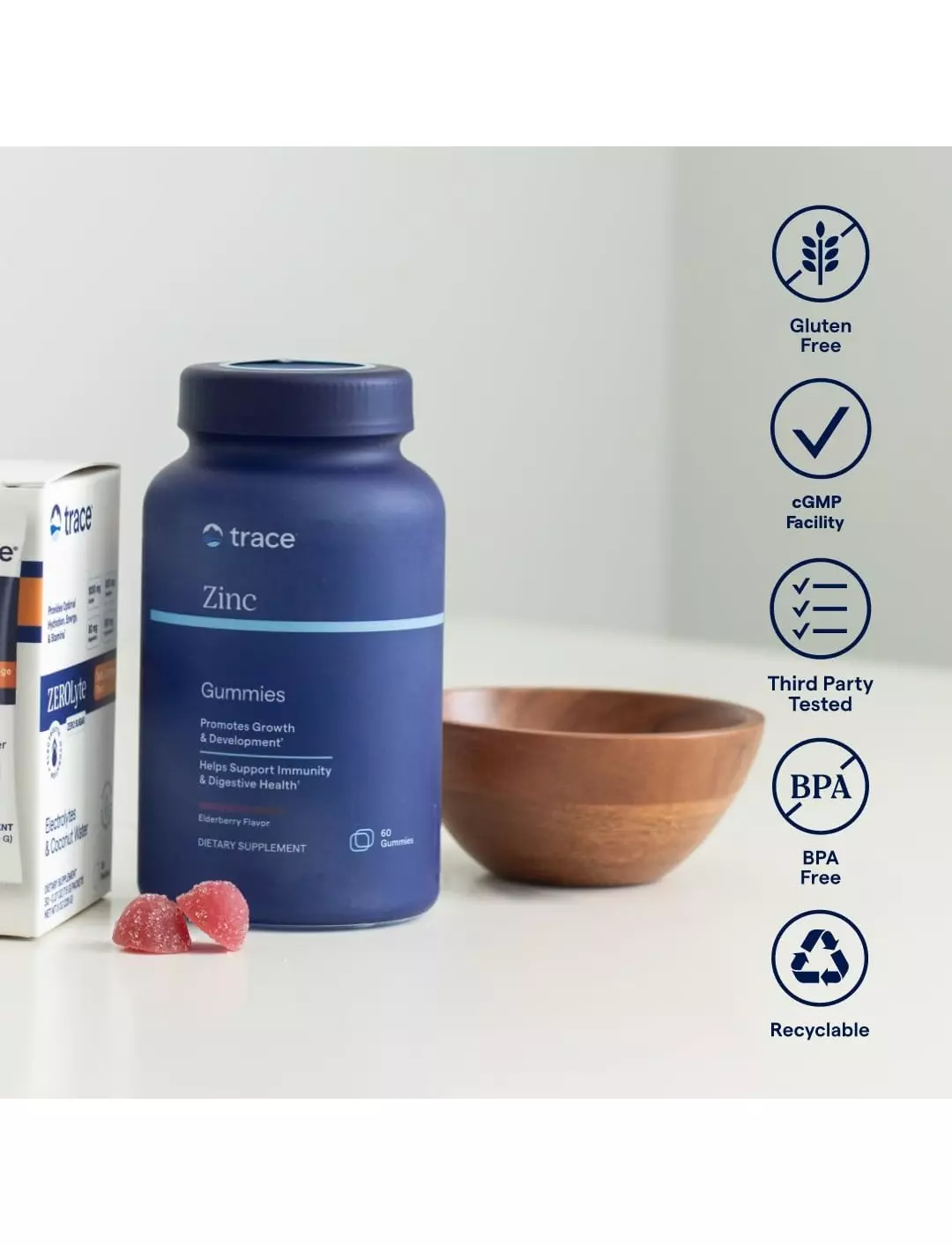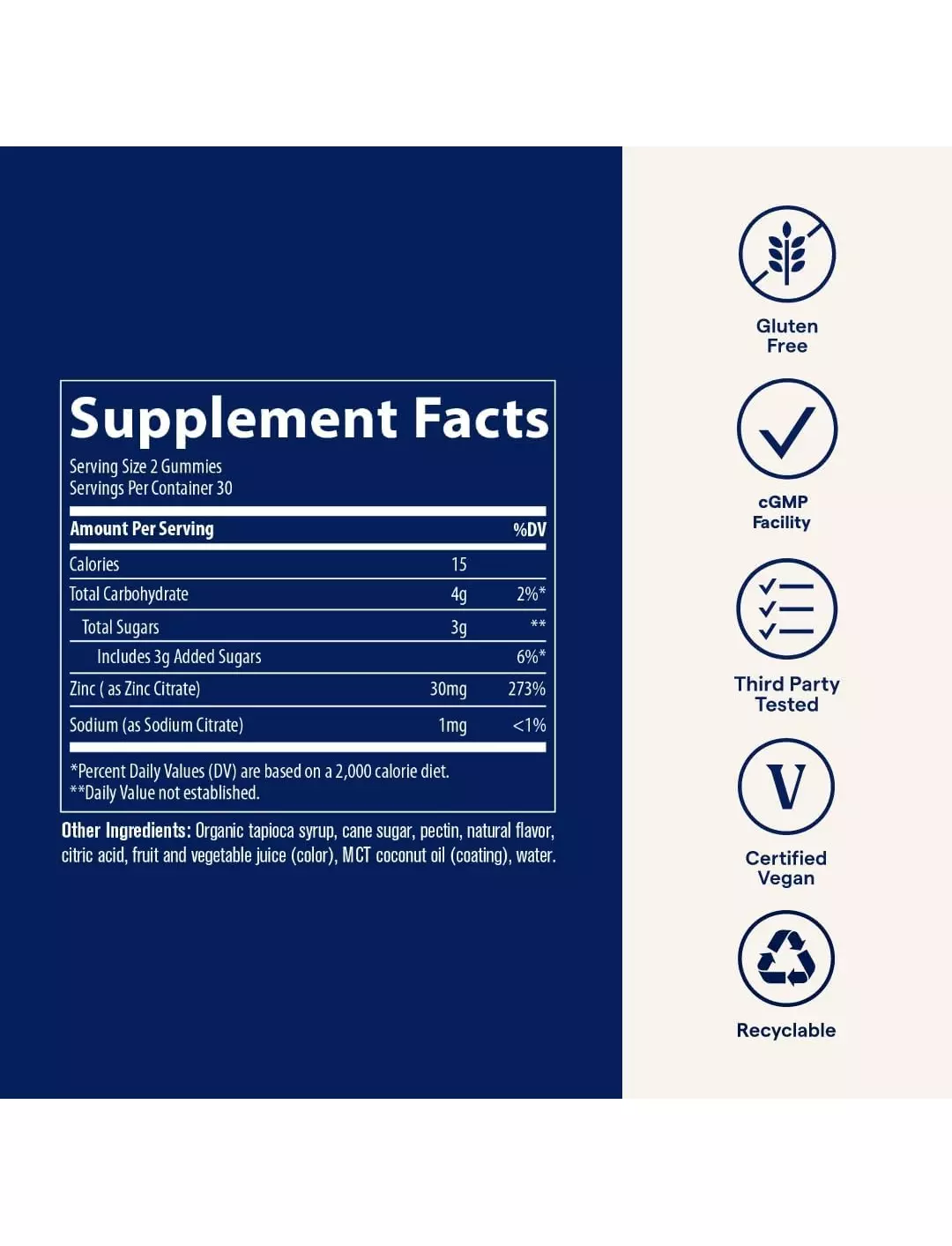 Trace Minerals Zinc Gummies — це жувальні цукерки з цинком, які легко приймати і дітям, і дорослими. Цинк — важливий мінерал, що підтримує нормальний ріст і розвиток, зміцнює імунну систему та сприяє здоровому обміну речовин.