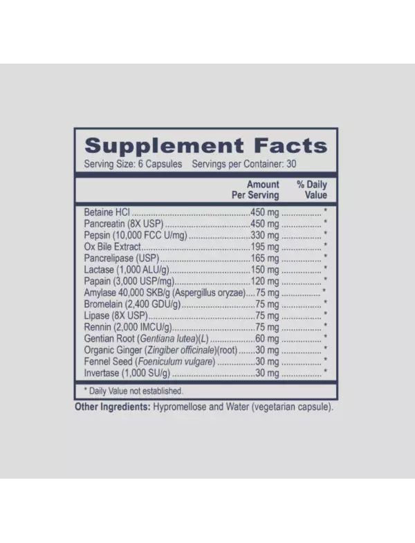 Pro Multi Enzyme Complex — це професійна формула ферментів, створена для покращення травлення та засвоєння поживних речовин. Завдяки поєднанню ферментів, жовчних компонентів і рослинних екстрактів, продукт підтримує комфорт у шлунково-кишковому тракті та сприяє здоровій роботі травної системи.