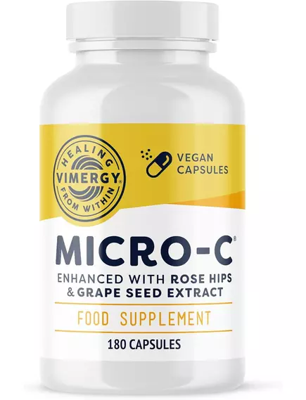 Капсули Vimergy Micro-C з вітаміном C — ваше потужне джерело високоякісного вітаміну C з біофлавоноїдами, екстрактом шипшини та ацероли для посилення його корисних властивостей. Кожна порція містить стільки ж вітаміну C, скільки 7 апельсинів.