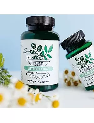 Bitters Extra™ від Vitanica містить натуральні рослинні ферменти та трав'яні біттери для підтримки травлення, що призводить до зменшення дискомфорту у травному тракті після їди. Допомагаючи організму ефективніше розщеплювати їжу, Bitters Extra™ також може підтримувати засвоєння поживних речовин та загальне здоров'я травної системи.